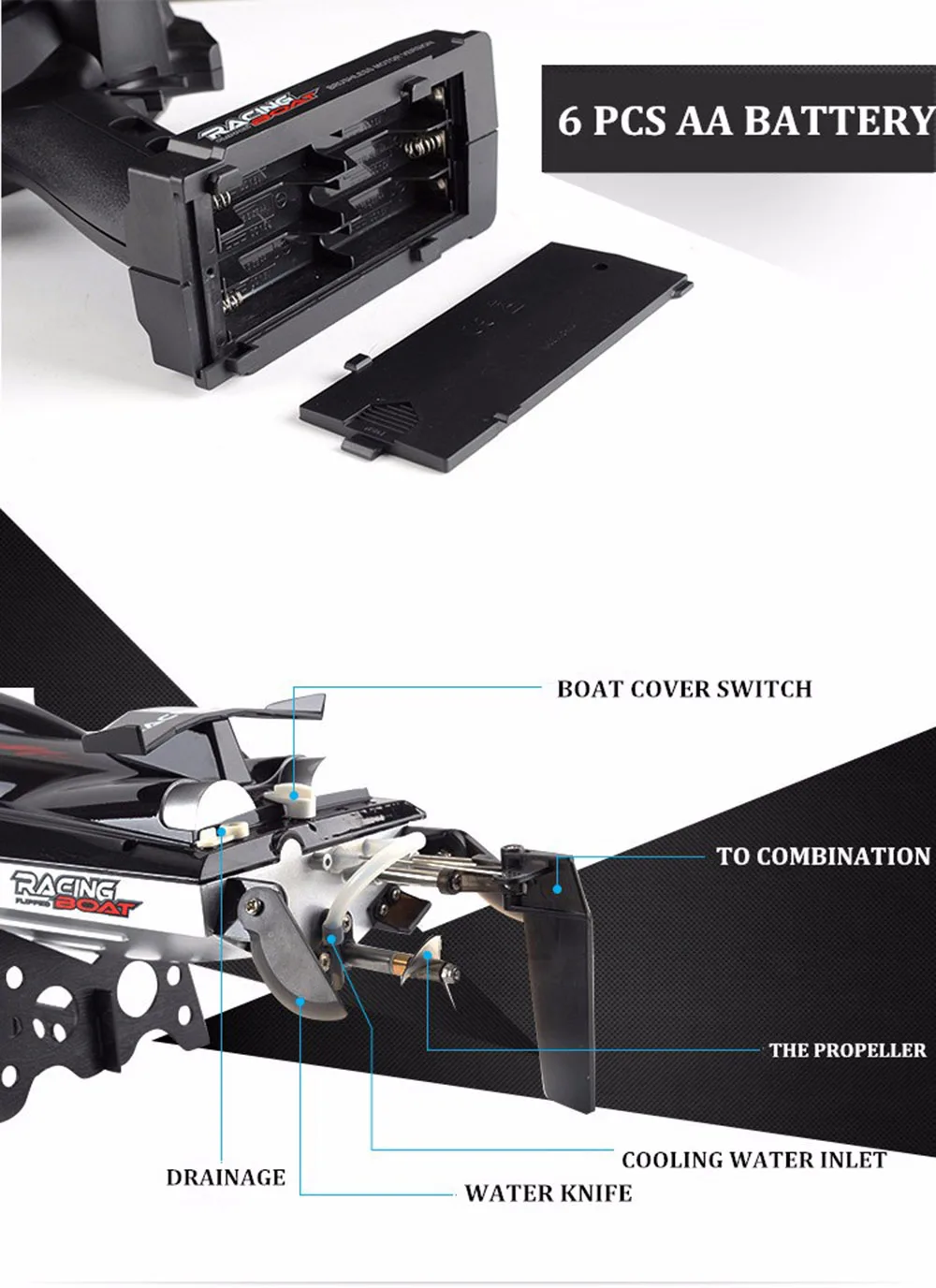 1. оснащен 35А супер мощный двухсторонний электронный регулятор скорости, 2815-35000 кв бесщеточный двигатель и 1800 мАч 25c Литий-полимерный аккумулятор, FT012 супер мощный и гибкий быстрый, максимальная скорость может достигать 45 км/ч.